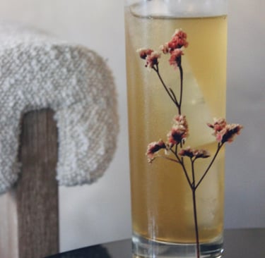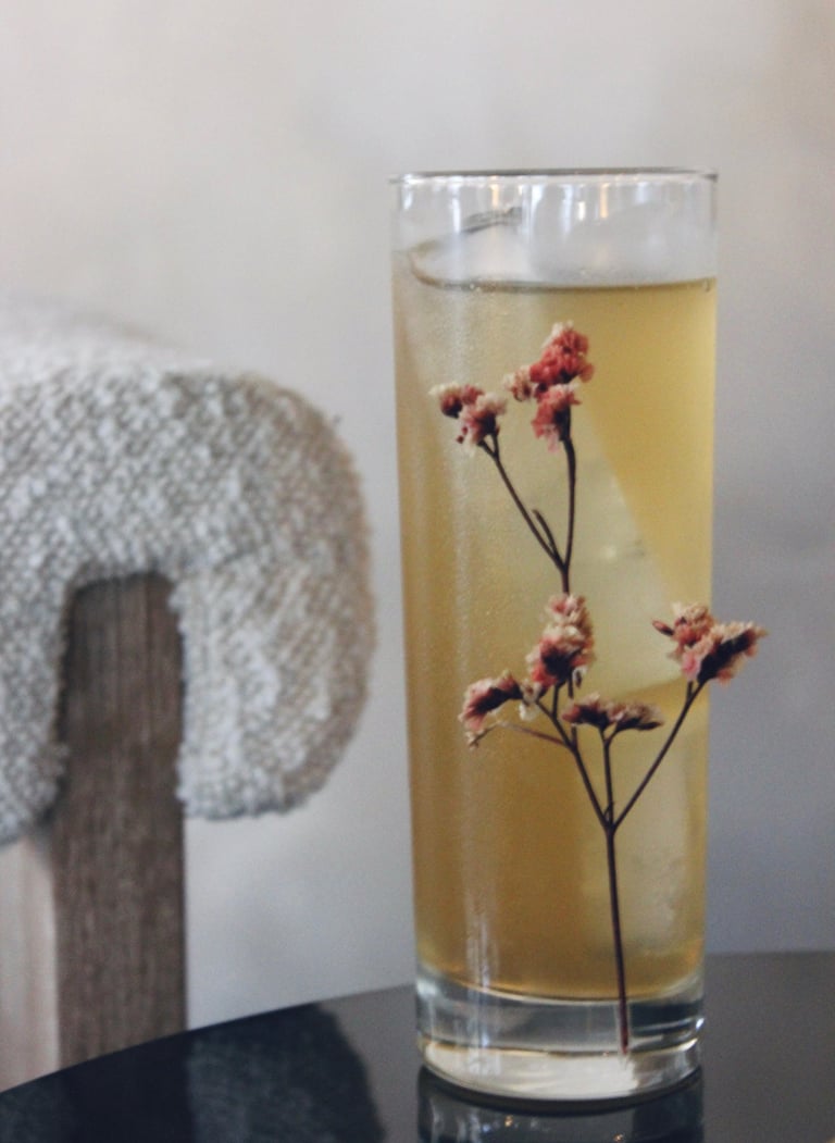 The nutty warmth of pistachio Gin, a bright twist of citrus, a touch of salted caramel for a hint of decadence and topped with sparkling wine for a bubbly finish.