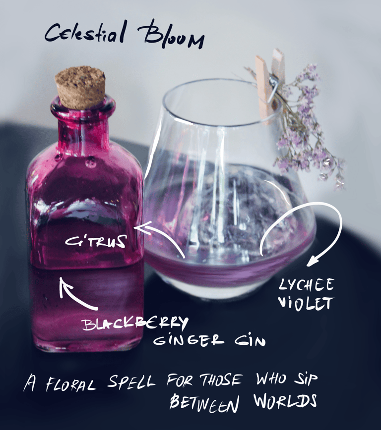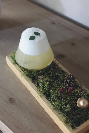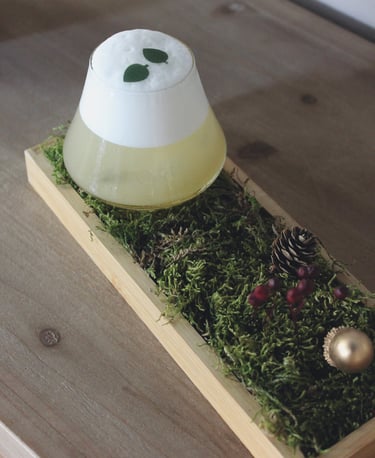 A blend of tangy pomegranate, zesty mandarin, and rich prunes creates a symphony of festive flavors with a crisp kick of vodka and topped with a sparkling touch of ginger beer.