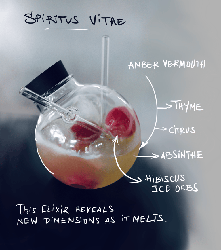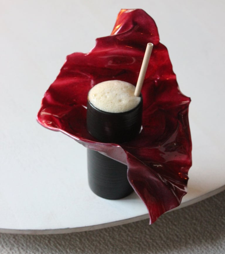 Chestnut-infused brandy, rice wine, and aromatic bitters crowned with a dulce de leche foam.
