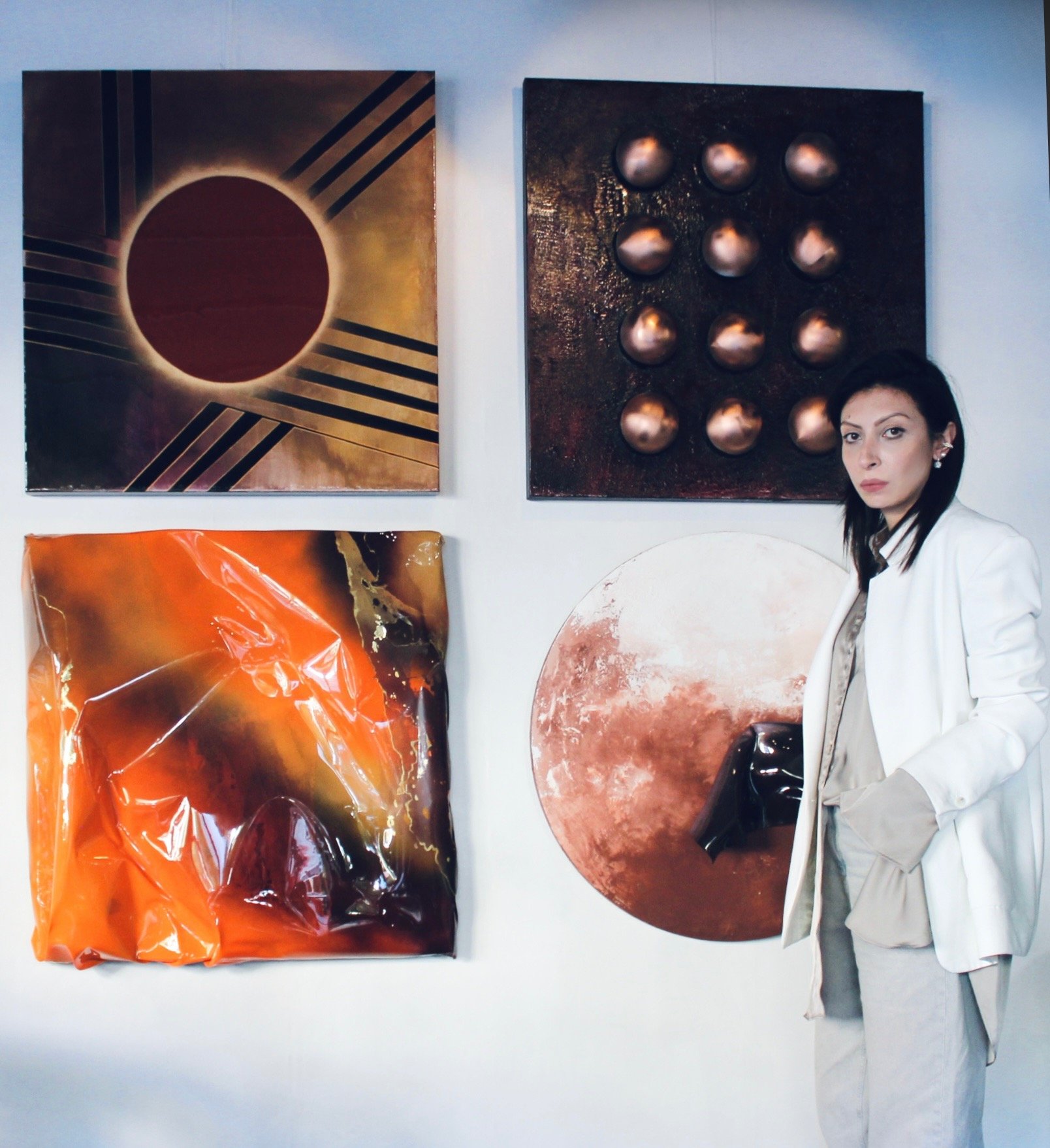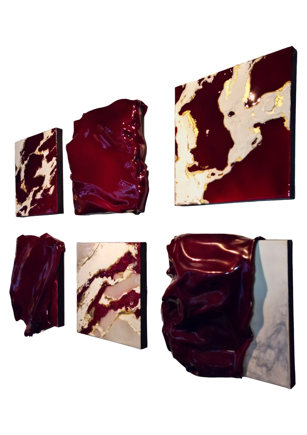 Crafted with resin, 24k gold leaf, plexiglass & plaster on canvas