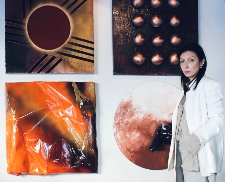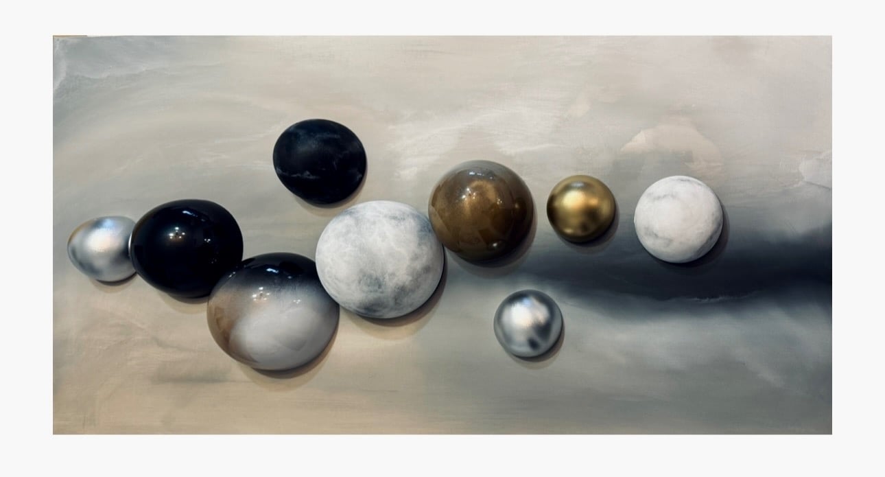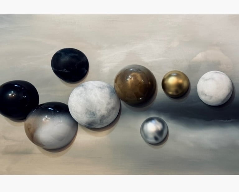 The Cosmos reimagined in texture and form spheres of thoughts, suspended in time.