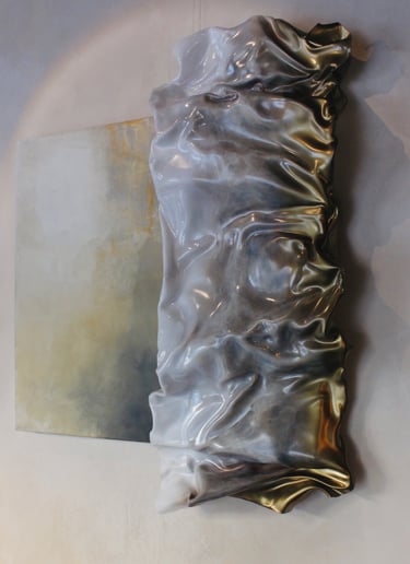 Where the boundaries of matter blur into sculpted chaos, harmonized in motion. Gravity whispers, pulling art beyond its edges—a canvas undone, a sculpture set free.